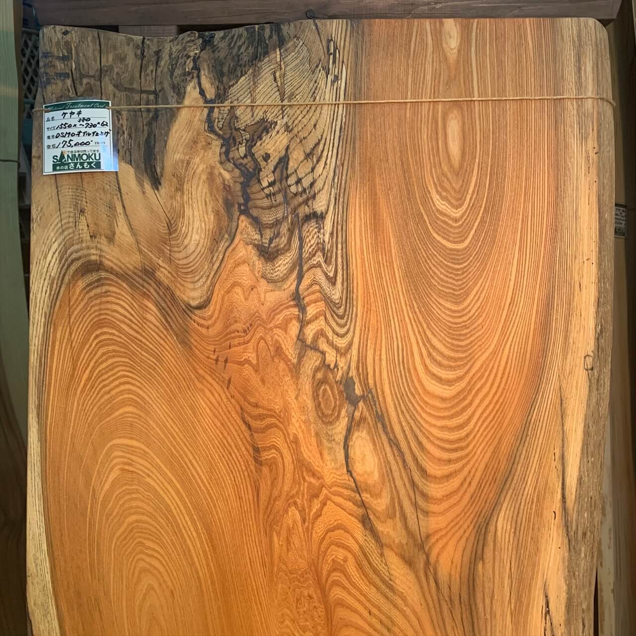 けやき一枚板【高樹齢】 1550×380~730×62㎜【植物油オイル仕上げ】