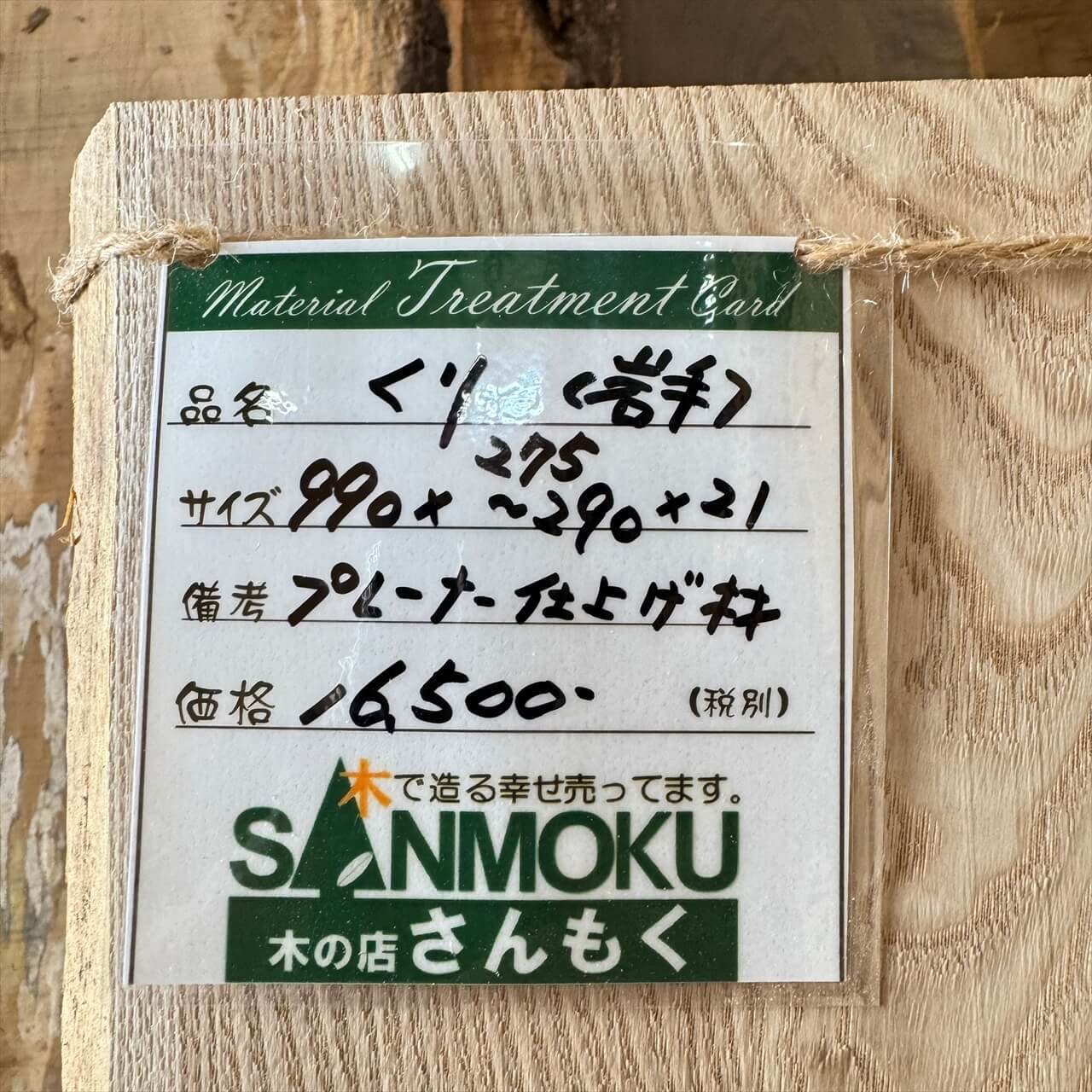 【自分で仕上げる一枚板】くり【岩手】990×275~290×21㎜【プレーナー仕上げ&木口カット】