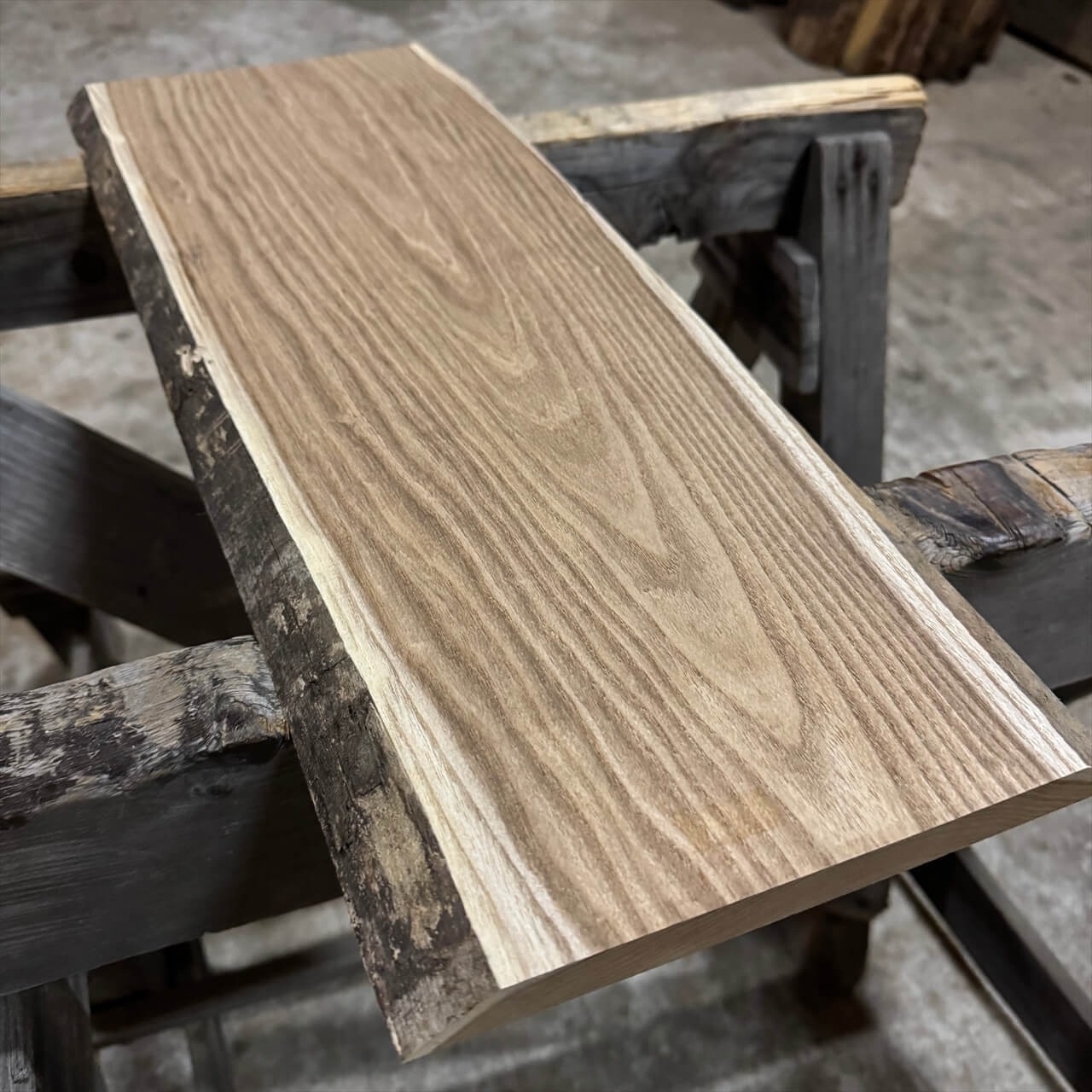 一枚板の両木口をカットしています。